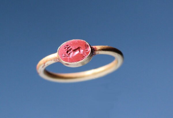 Roman Gold Ring: Carnelian Intaglio of a Lion