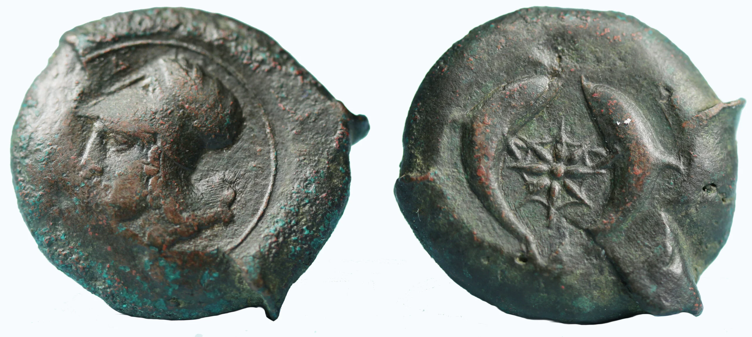 Rev: Helmeted head of Athena left; I below chin; to right, cock standing left on club.