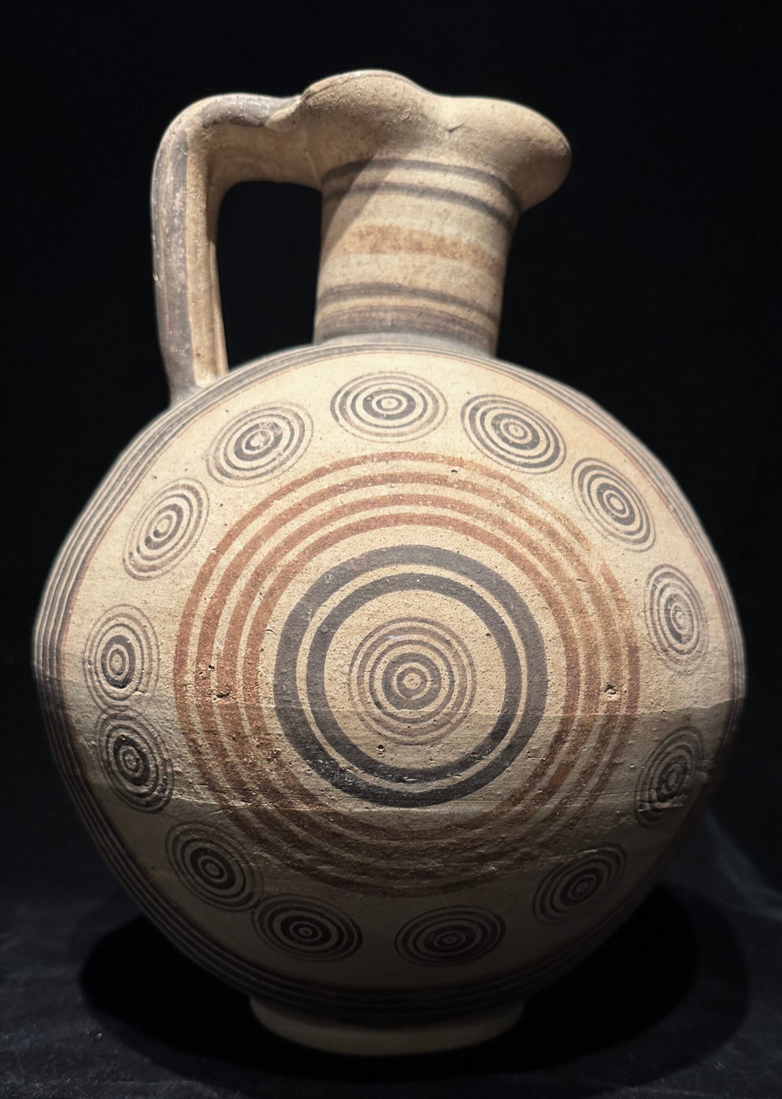 Red Polished Ware is a term applied to pottery of the Cypriot Bronze Age. Ceramics in this ware were handmade, monochrome vessels with smooth surfaces, painted in red or red-brown slips and burnished to a medium or high luster. They had a diverse range of forms, which included elaborate ritual vessels and zoomorphic shapes. Decorations typically consisted of incised motifs, relief decorations or mottled surfaces. The black rims and interiors of some vessels were created by use of specific and well-controlled firing techniques.