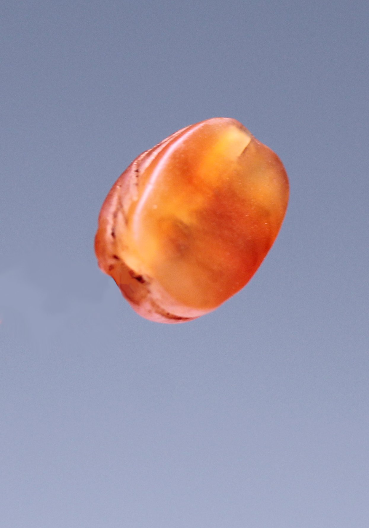 An ancient Egyptian carnelian scarab, drilled through for suspension.