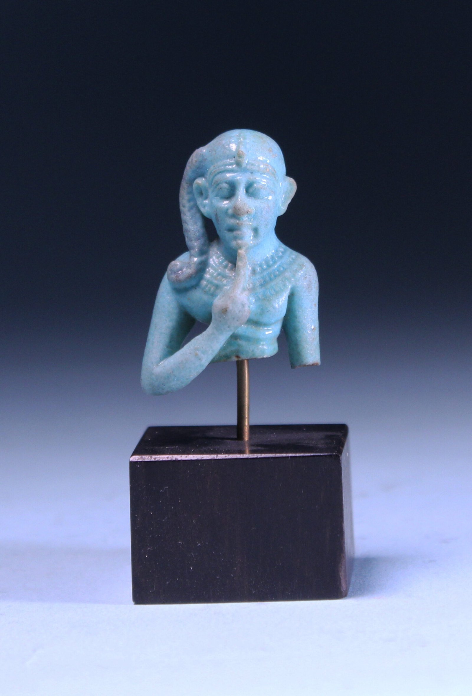 Harpokrates, the infant son of Isis and Horus was a symbol of youth and fertility. He was essentially a patron deity of childhood, especially popular in the Late Period.