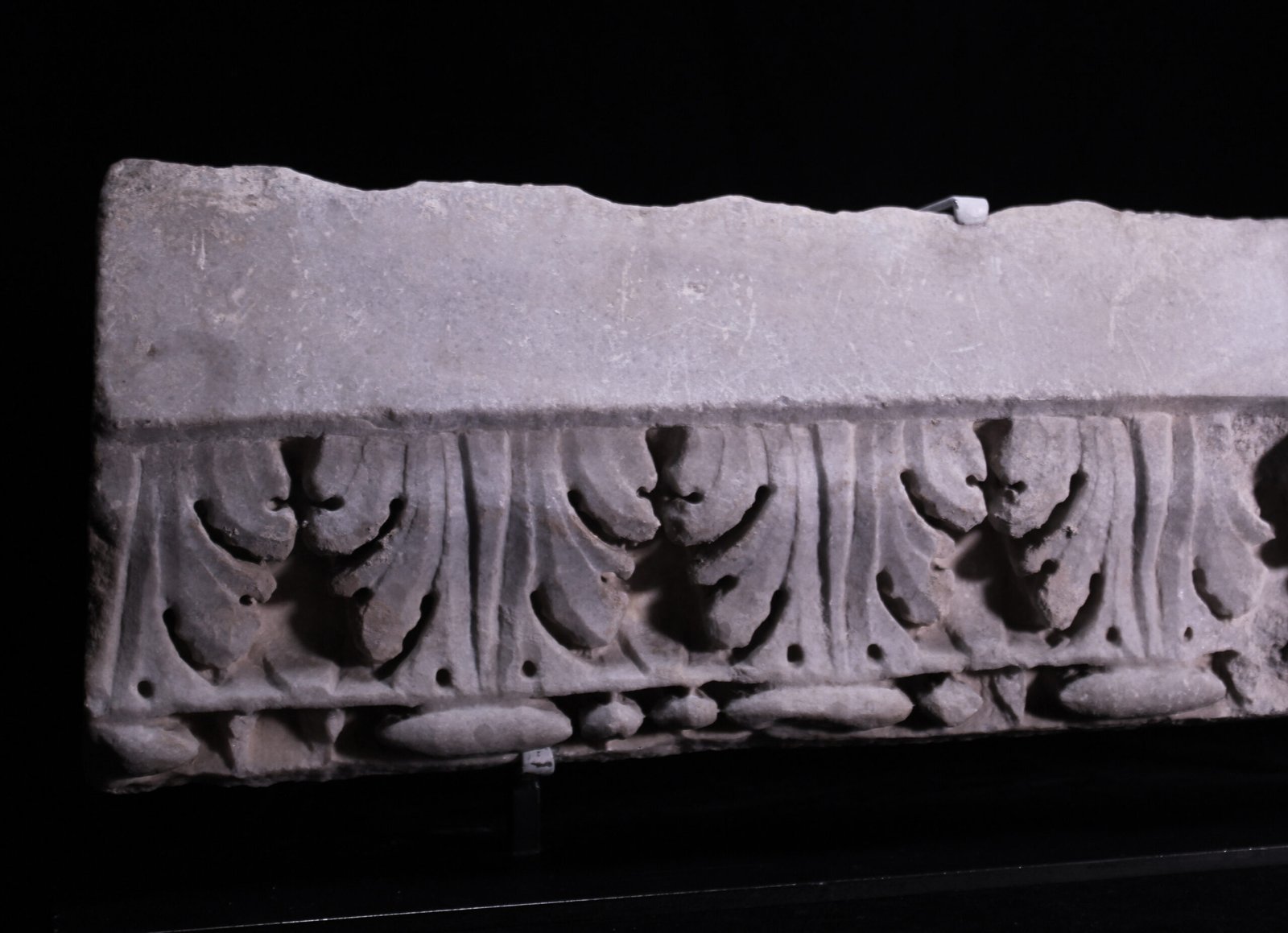 An ancient Roman marble architectural fragment in the form of a relief of downward facing acanthus leaves.