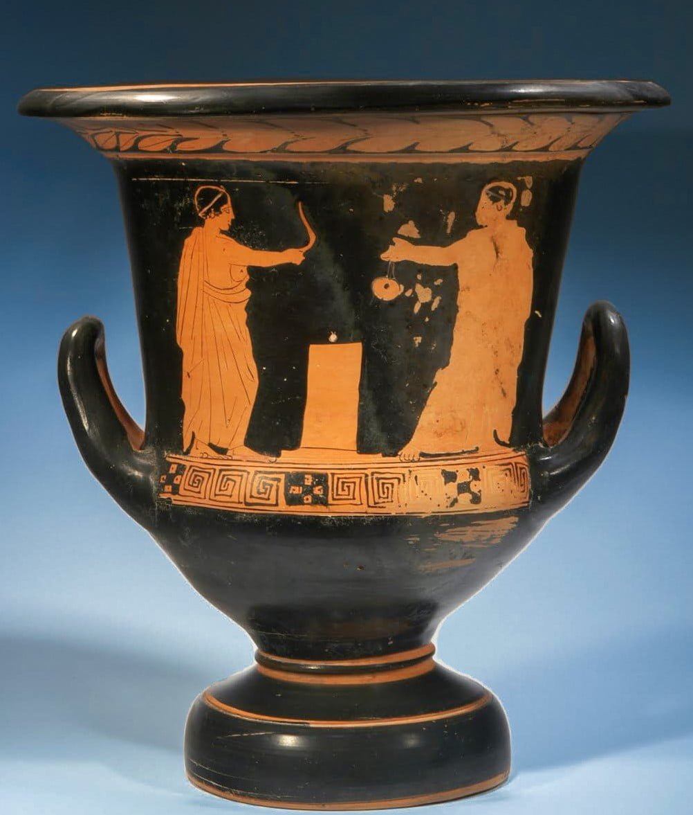 The Chequer Painter and his follower the Dirce Painter are considered to be the chief forerunners of both early Campanian and Paestan vase painting.The output and quality of the Greek colonial potters working in Southern Italy increased greatly following the Peloponnesian War when Attic exports fell off sharply. South Italian Colonial Greek craftsmanship of the 4th century BC was an amalgamation of the Ionian (Athenian, Attic) conventions, and Doric (western colonial Greek) styles, with a noticeable native Italian aesthetic. The five predominant regional schools of South Italian pottery were: Apulian, Sicilian, Lucanian, Paestan, and Campanian.